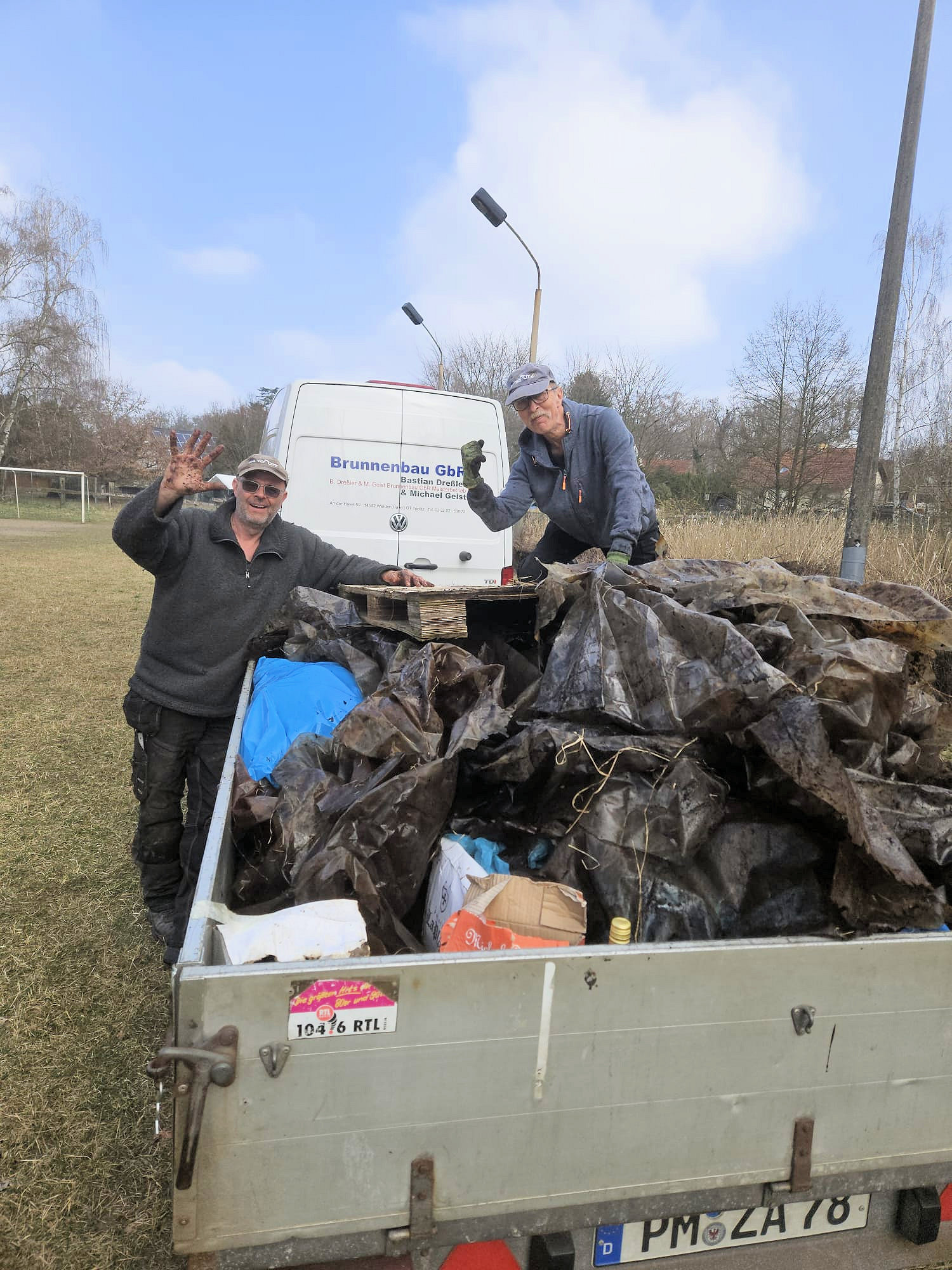 Die Stadt Werder hat uns mit einem Container und Säcken unterstützt, und der Ortsbeirat hat Handschuhe für die Kita und Schule bereitgestellt.